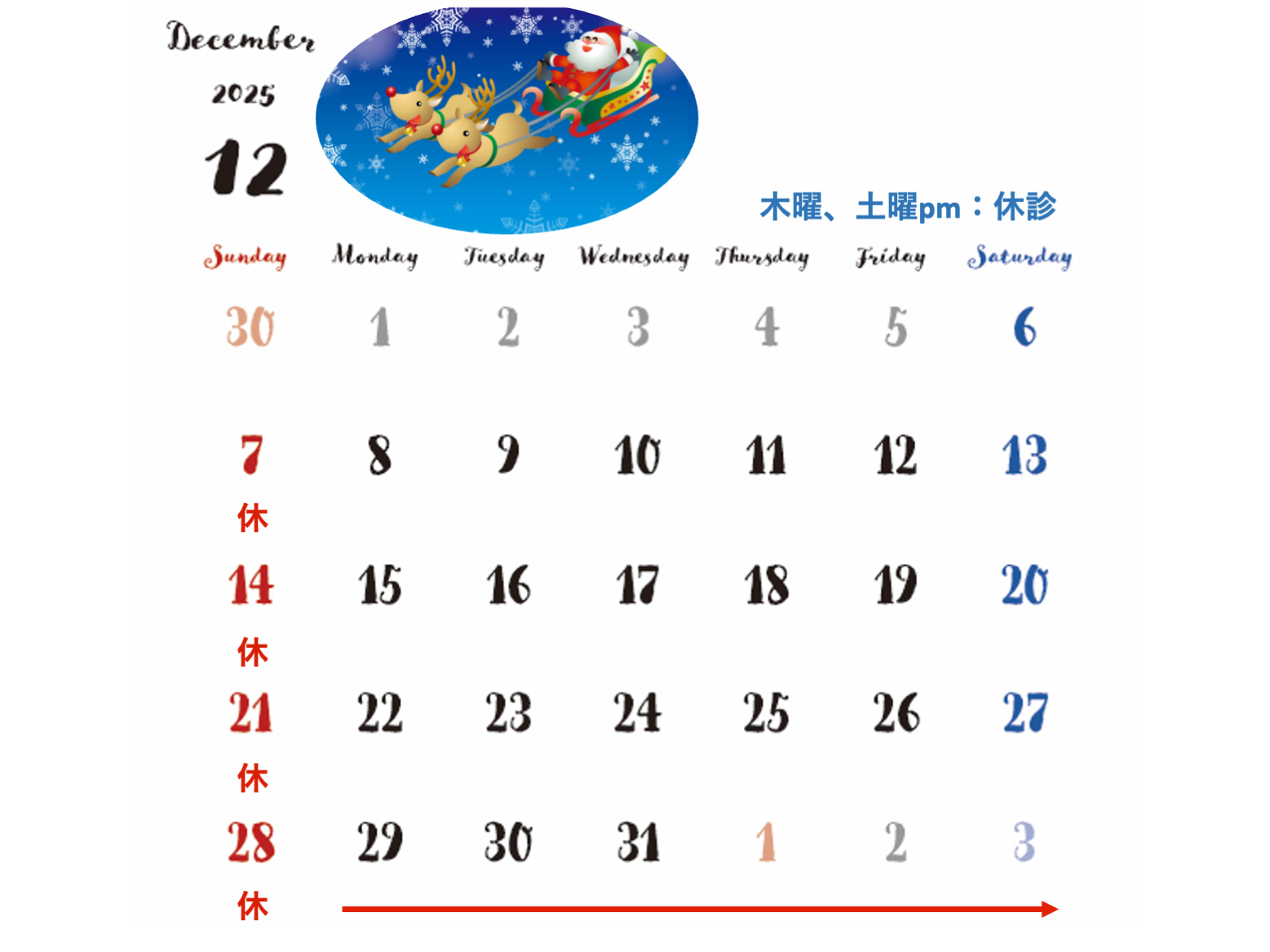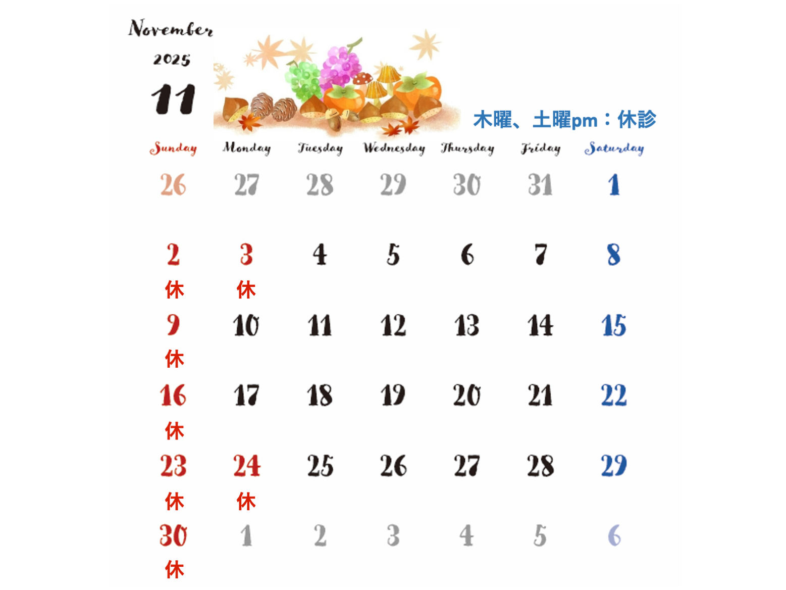 日曜日ならびに、木曜・土曜日の午後は休診となります。