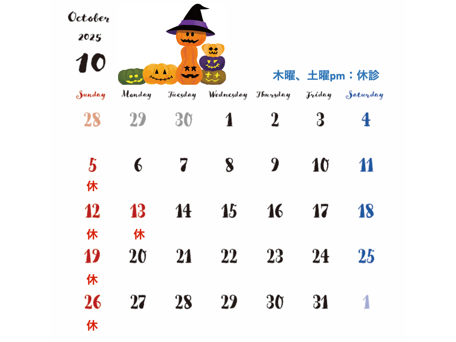 10月休診日のご案内です。